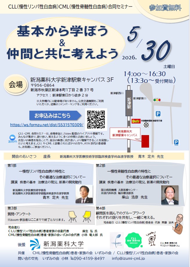 CLL(慢性リンパ性白血病)/CML(慢性骨髄性白血病)合同セミナーのお知らせ